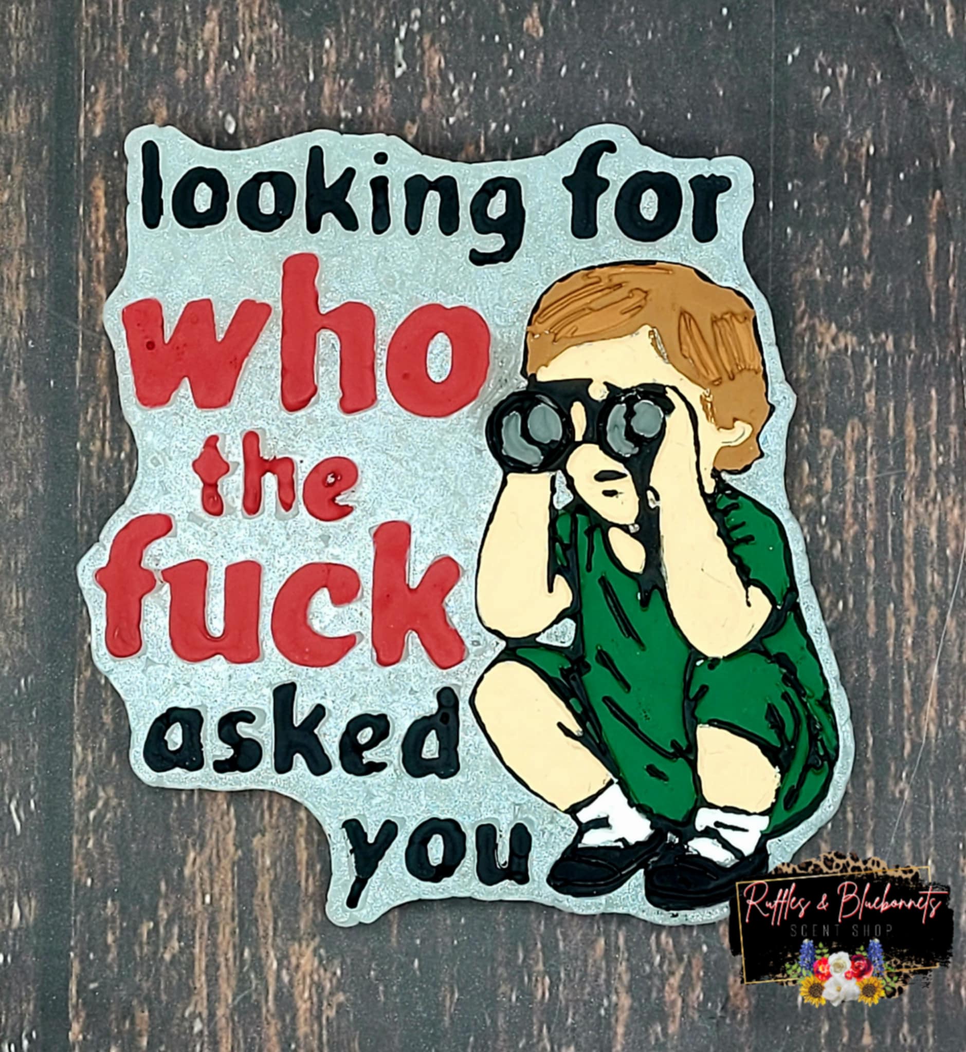 "looking for who the fuck asked you" measures approximately 4" x 4".